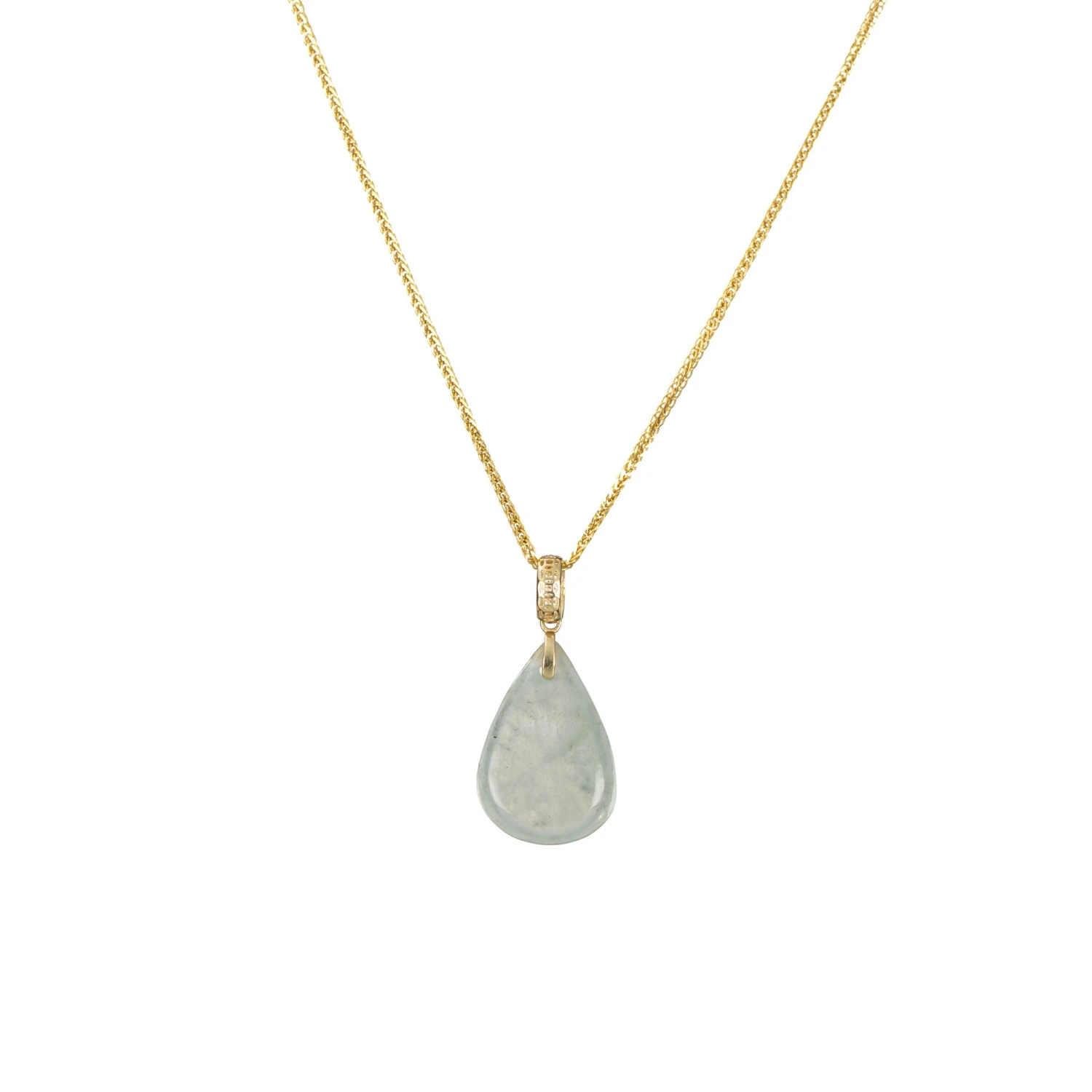 Please note, the gold chain is not included with the pendant. To complete your look, you can purchase a matching gold chain separately. With its classic design and high-quality craftsmanship, this 18K Yellow Gold Jadeite Jade Tear Drop Pendant is a beautiful addition to any jewelry collection.