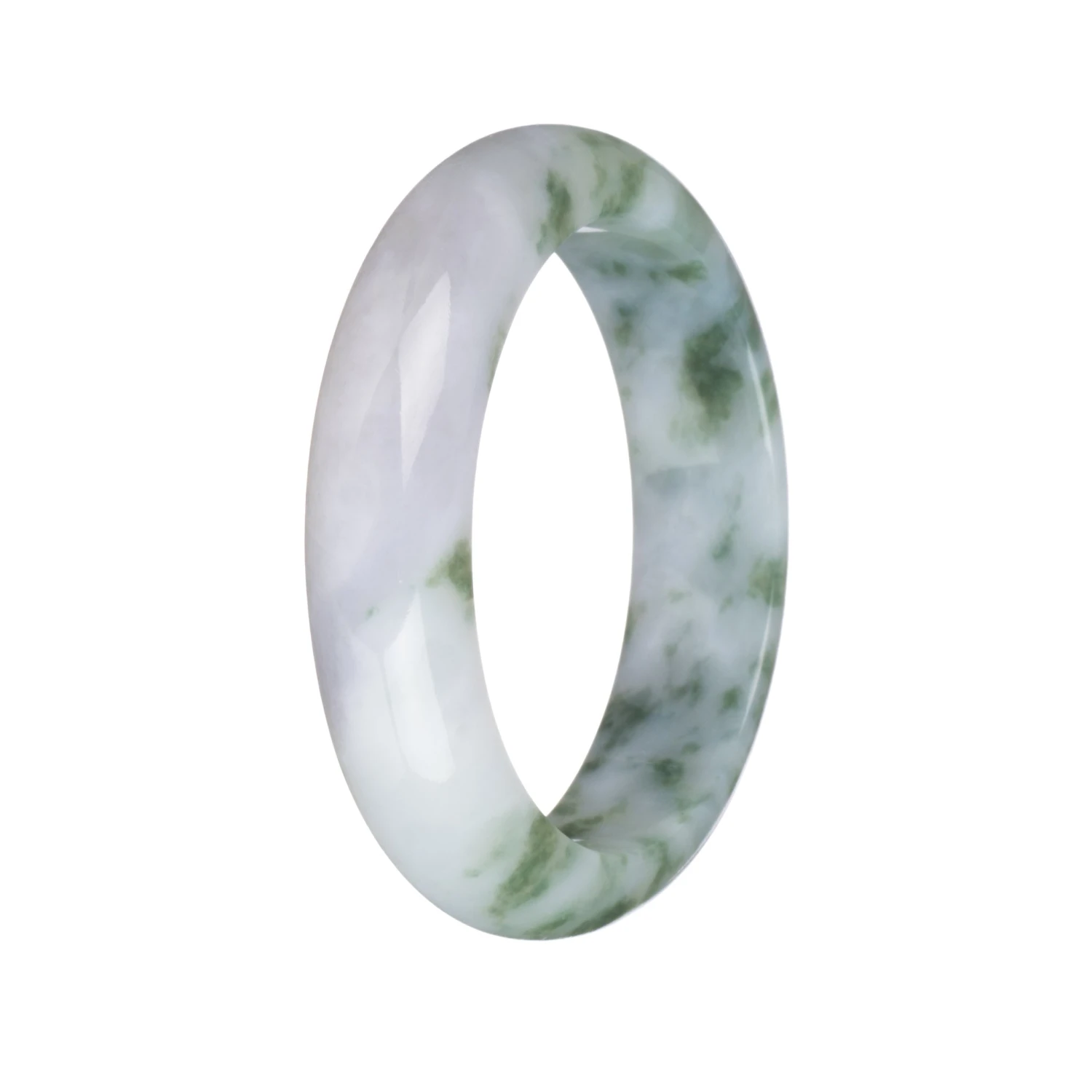 54mm White And Pale Lavender With Green Patterns Jade Bangle Bracelet