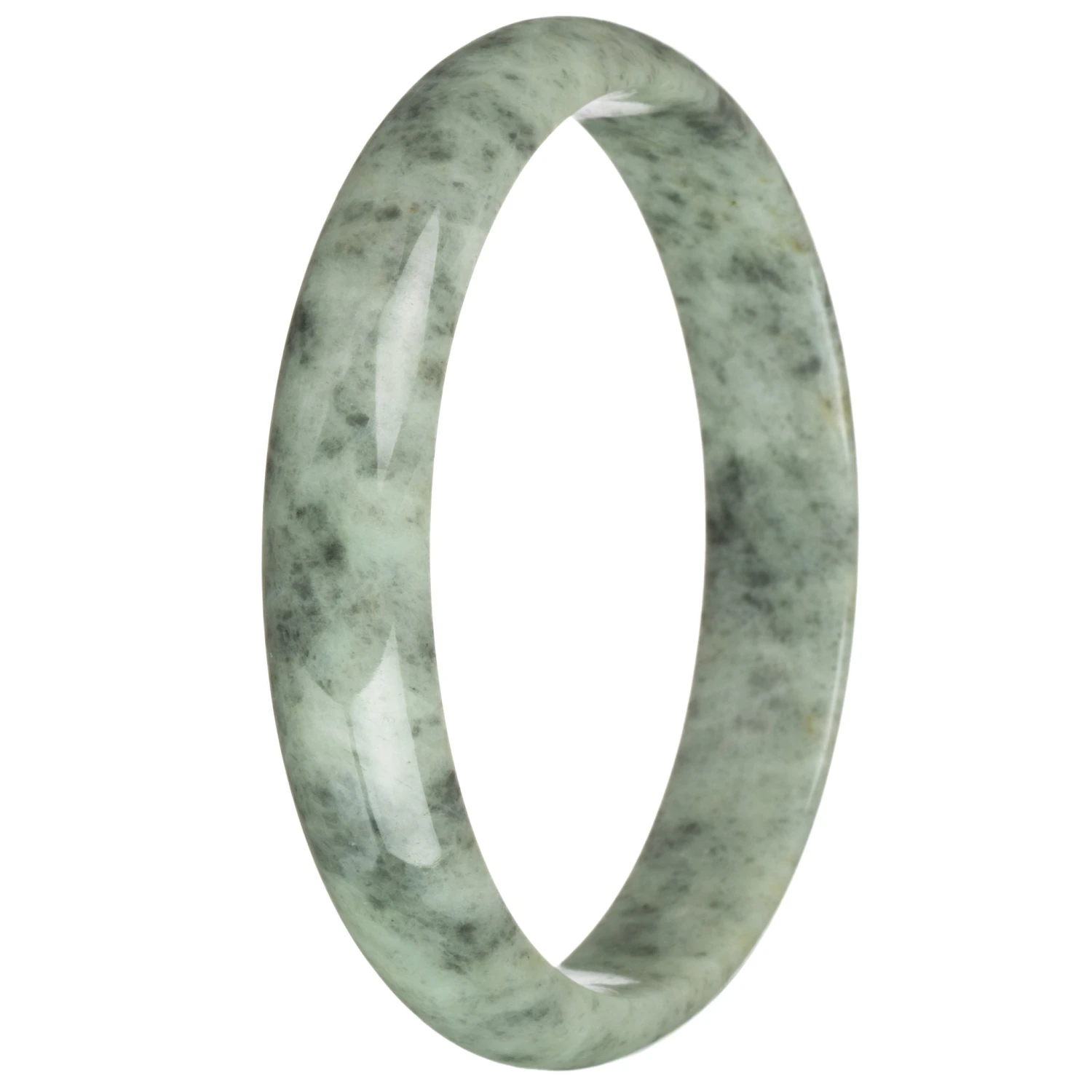 Genuine Untreated Light Green With Light Grey Pattern And Red Specks Jade Bangle – 59mm Half Moon
