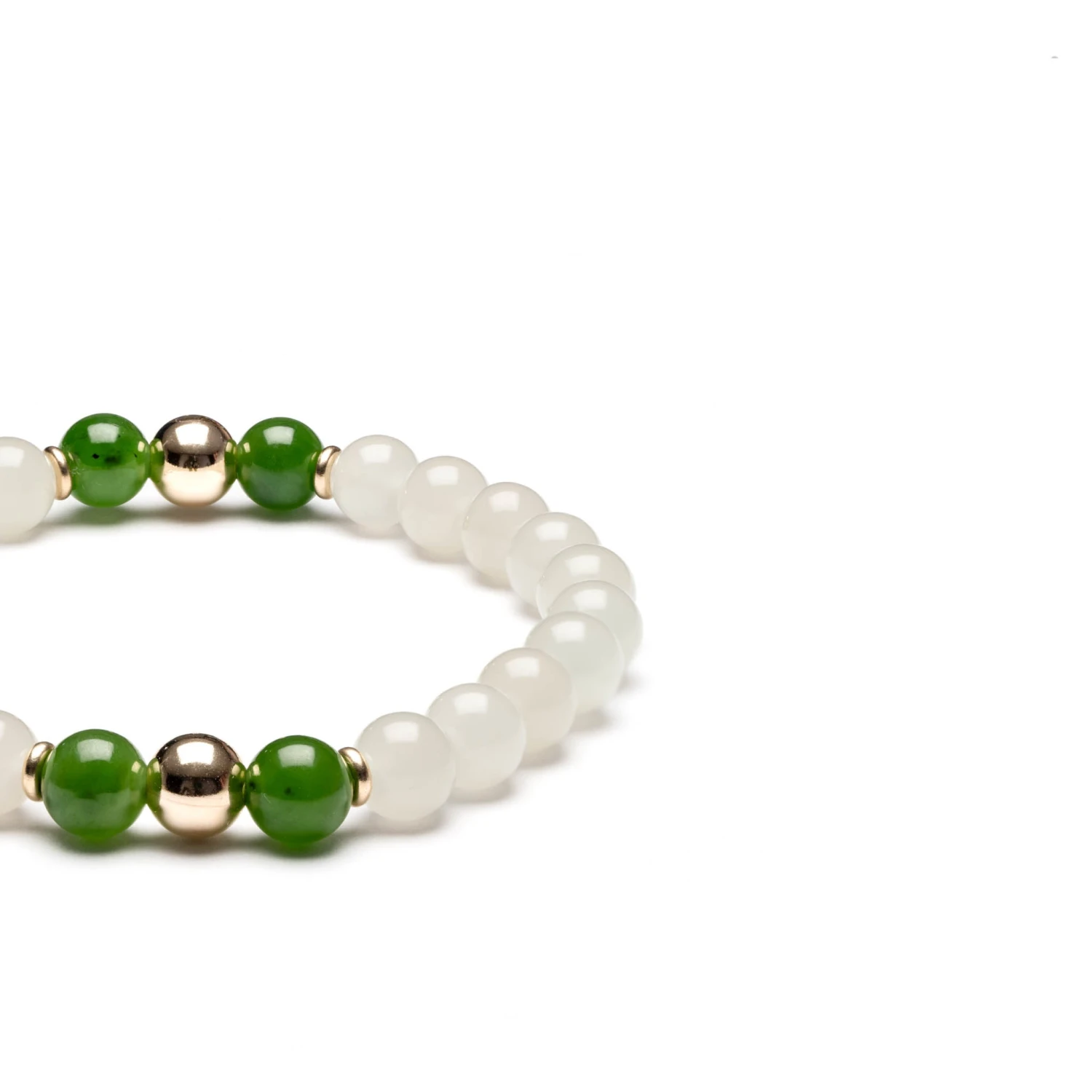 Celebrate timeless beauty and balance with the Eternal Soul Nephrite Jade Bracelet. Featuring luminous white jade beads as the primary design and radiant green Nephrite jade accents, this bracelet embodies harmony and eternal connection.