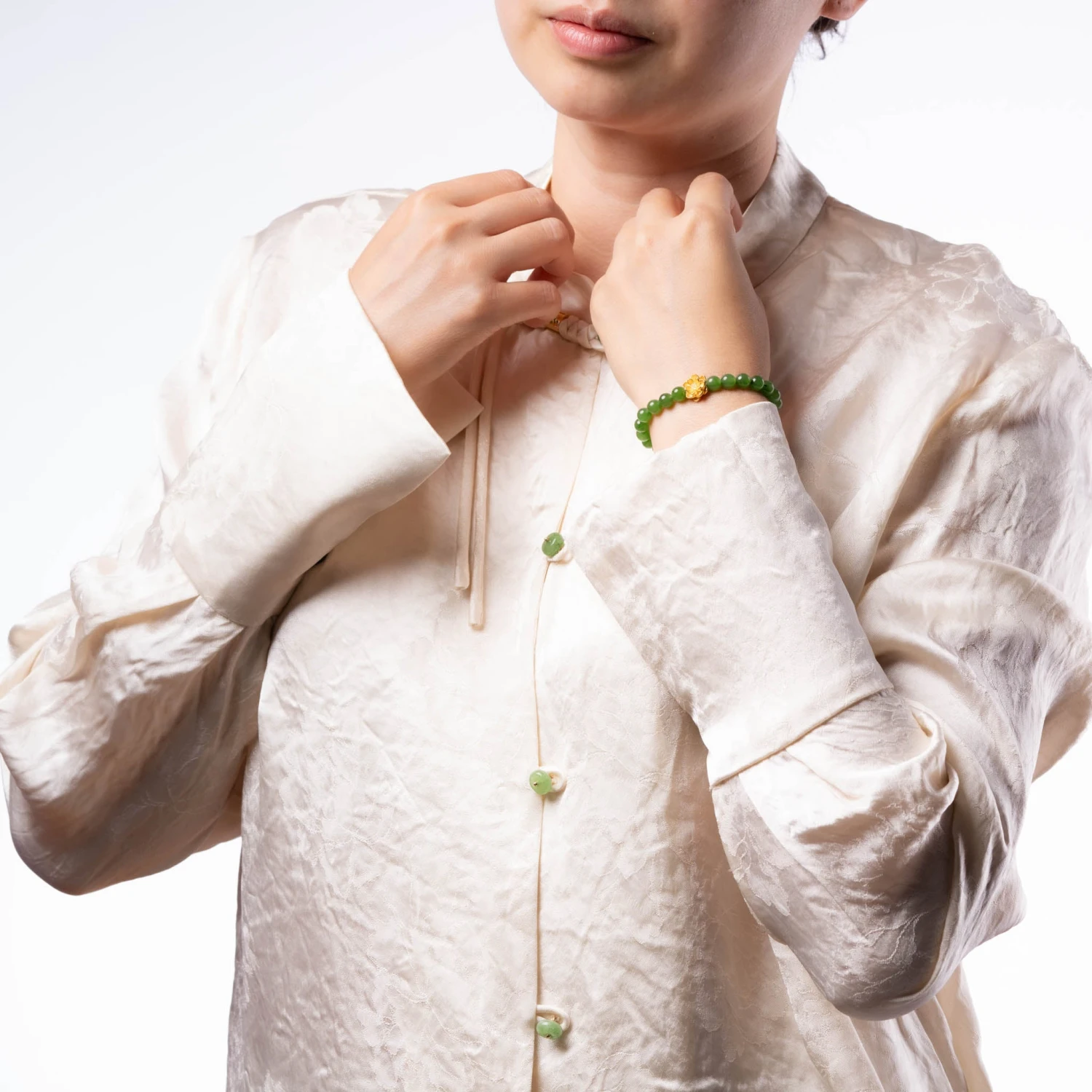 - Combines the serene beauty of jade with the luxurious shine of pure gold.