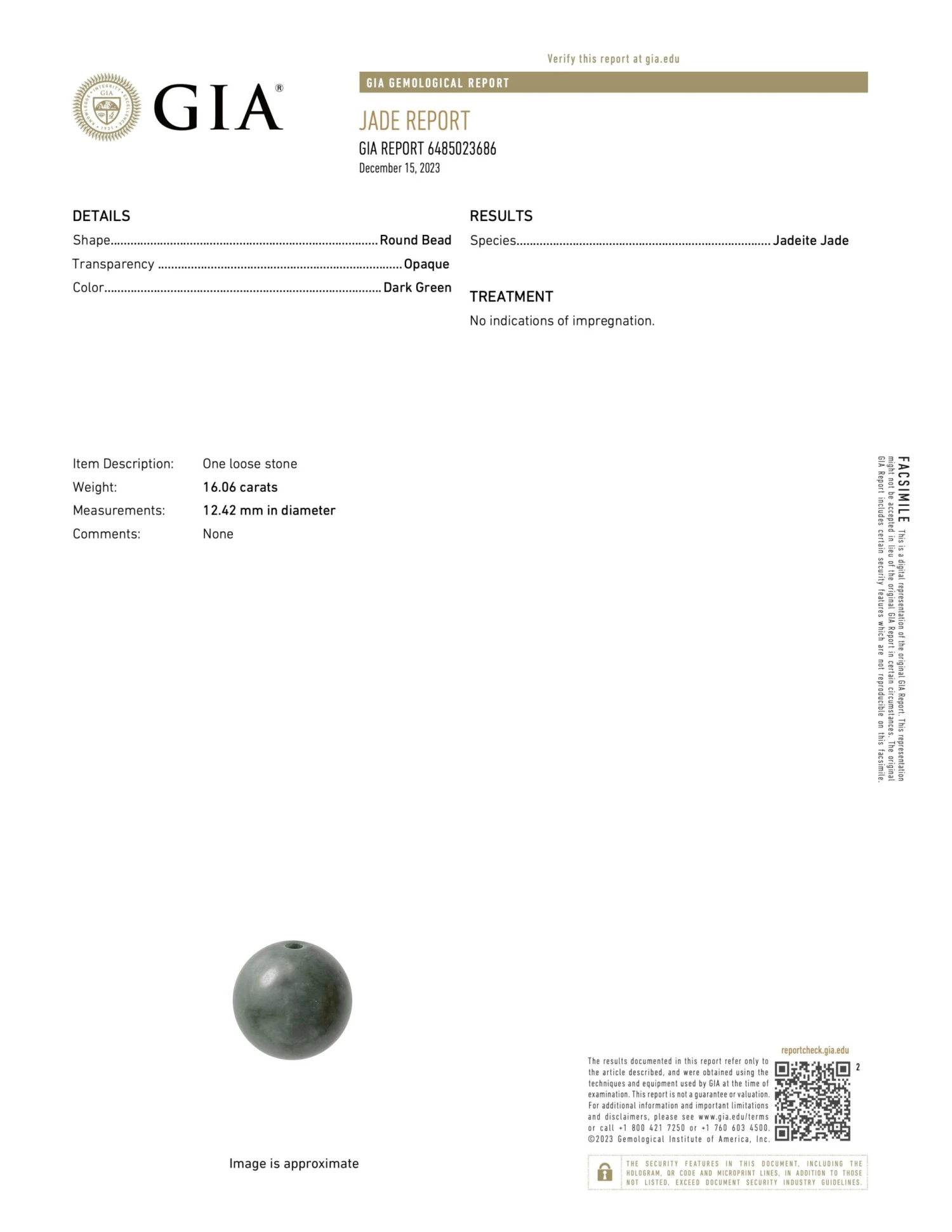 - Quality Assurance by GIA: A single bead sample used in this bracelet has been certified by the Gemological Institute of America (GIA) for its authenticity and quality. View the GIA report here: GIA Jade Report 6485023686.
