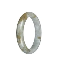 Genuine Grade A White With Grey And Brown Pattern Jadeite Jade Bangle Bracelet – 54mm Half Moon