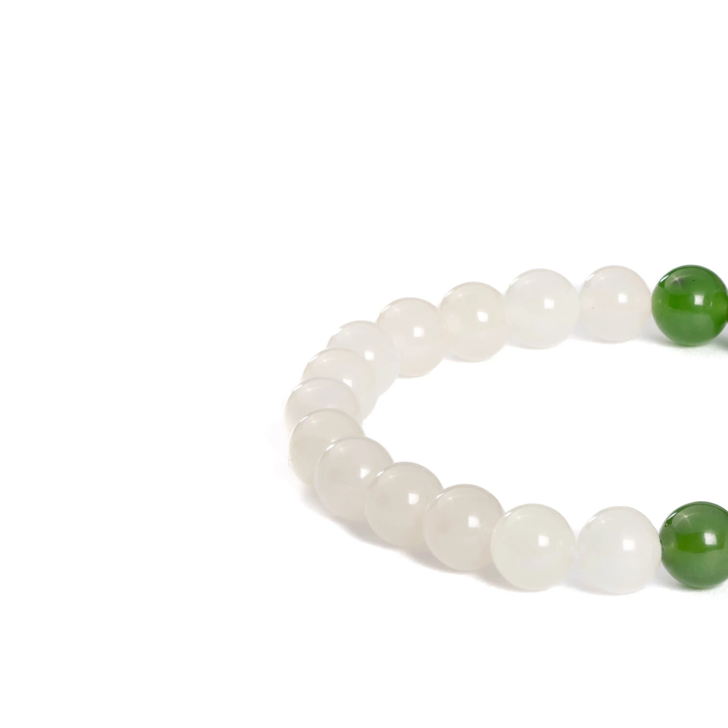 Celebrate harmony and duality with the Sacred Balance Jade Bead Bracelet, featuring a striking contrast of green and white nephrite jade beads. This bracelet symbolises balance, making it a meaningful and versatile accessory for any occasion.