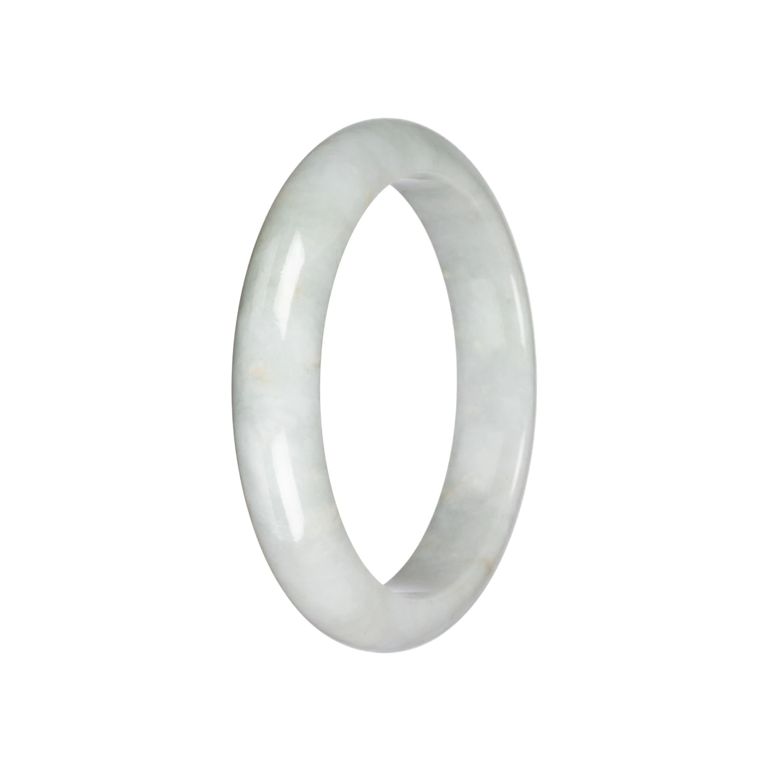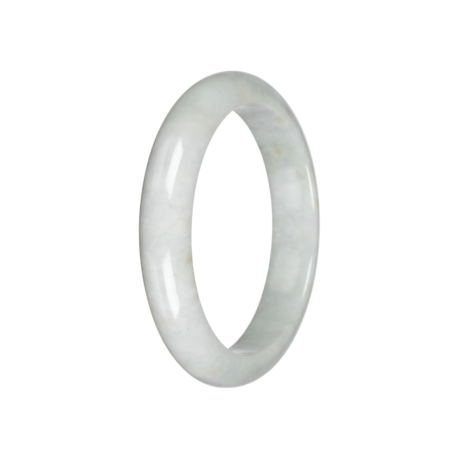 This exquisite jade bangle features a soothing pale green hue, crafted from Grade A untreated Jadeite Jade sourced from Burma. With an inner diameter of 58.57mm and a weight of 57.3 grams, this bangle boasts a unique half moon profile, making it a truly remarkable addition to any collection.